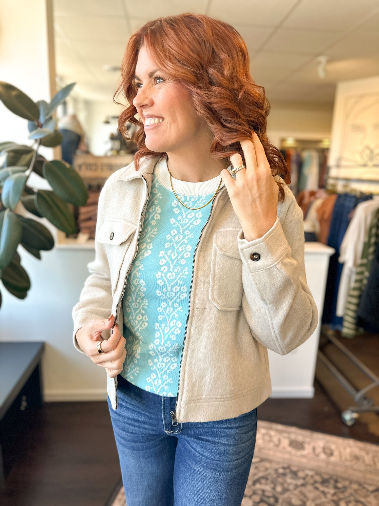 The Millie Crop is your go-to for those "what do I wear?" moments. Lightweight yet lined for comfort, this contemporary jacket works overtime—layer it when temps drop or style it as the star of your look. One piece, endless outfit possibilities. That's the magic of versatility done right.