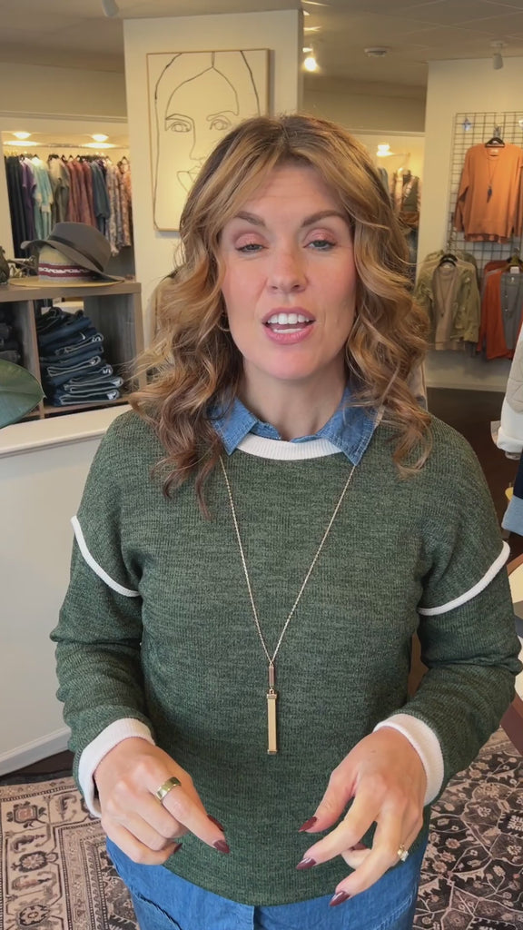 Home/Sweaters + Cardigans/Olive Trim Sweater