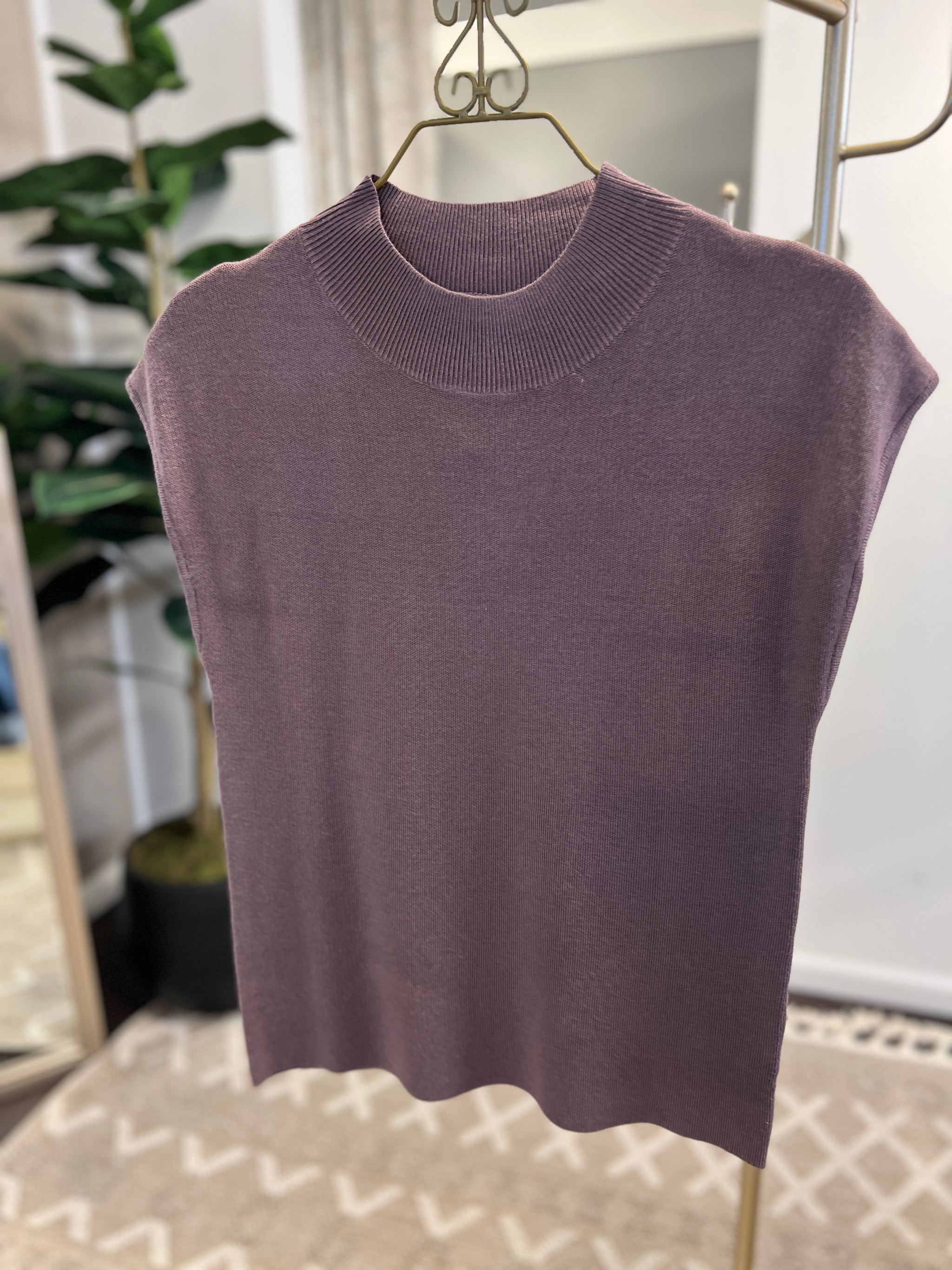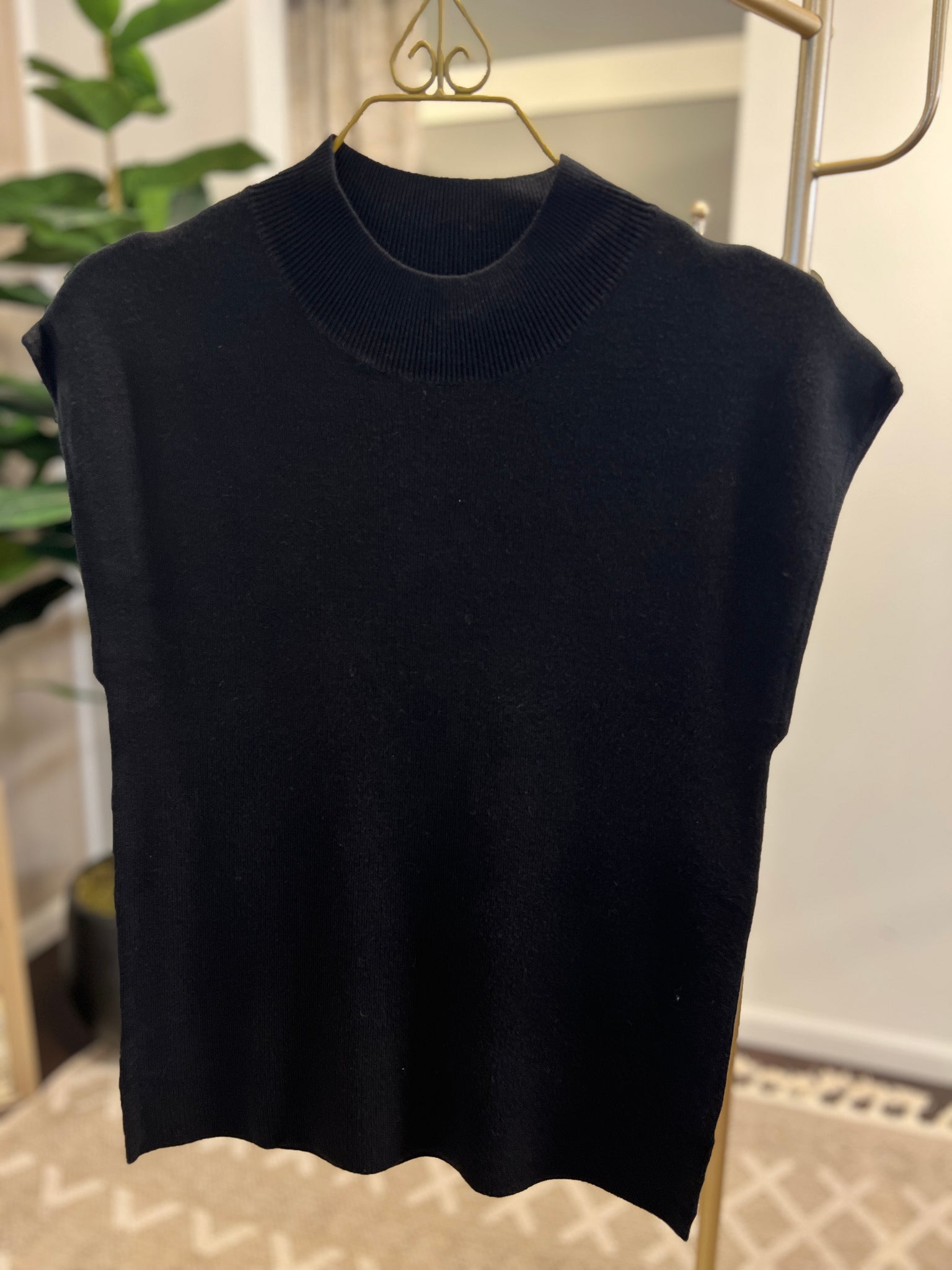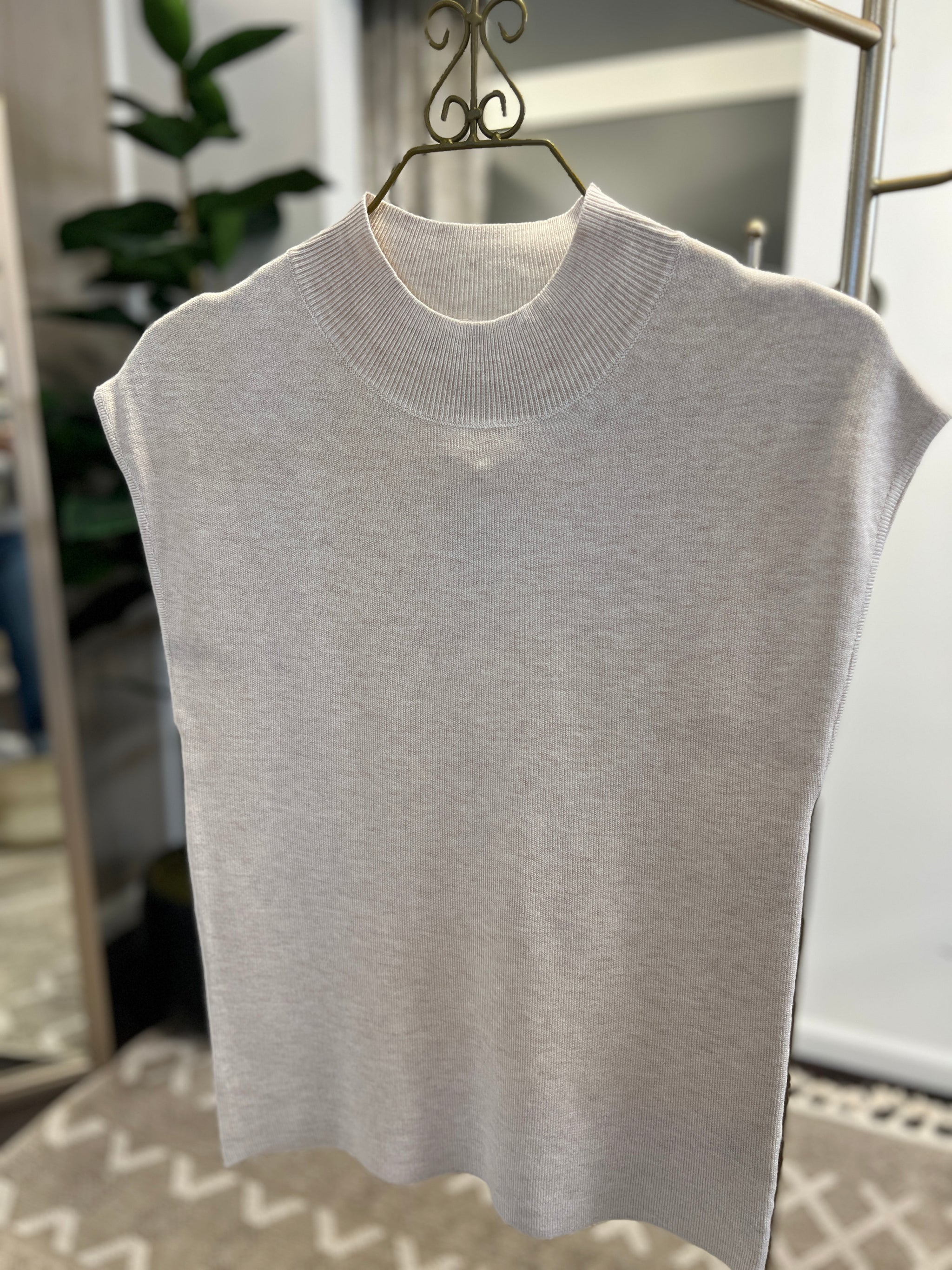 Meet your new layering hero. This mock neck, cap-sleeve sweater is the definition of simple sophistication — soft, minimal, and endlessly versatile. The sleek silhouette makes it the perfect base for blazers, jackets, and cardigans.