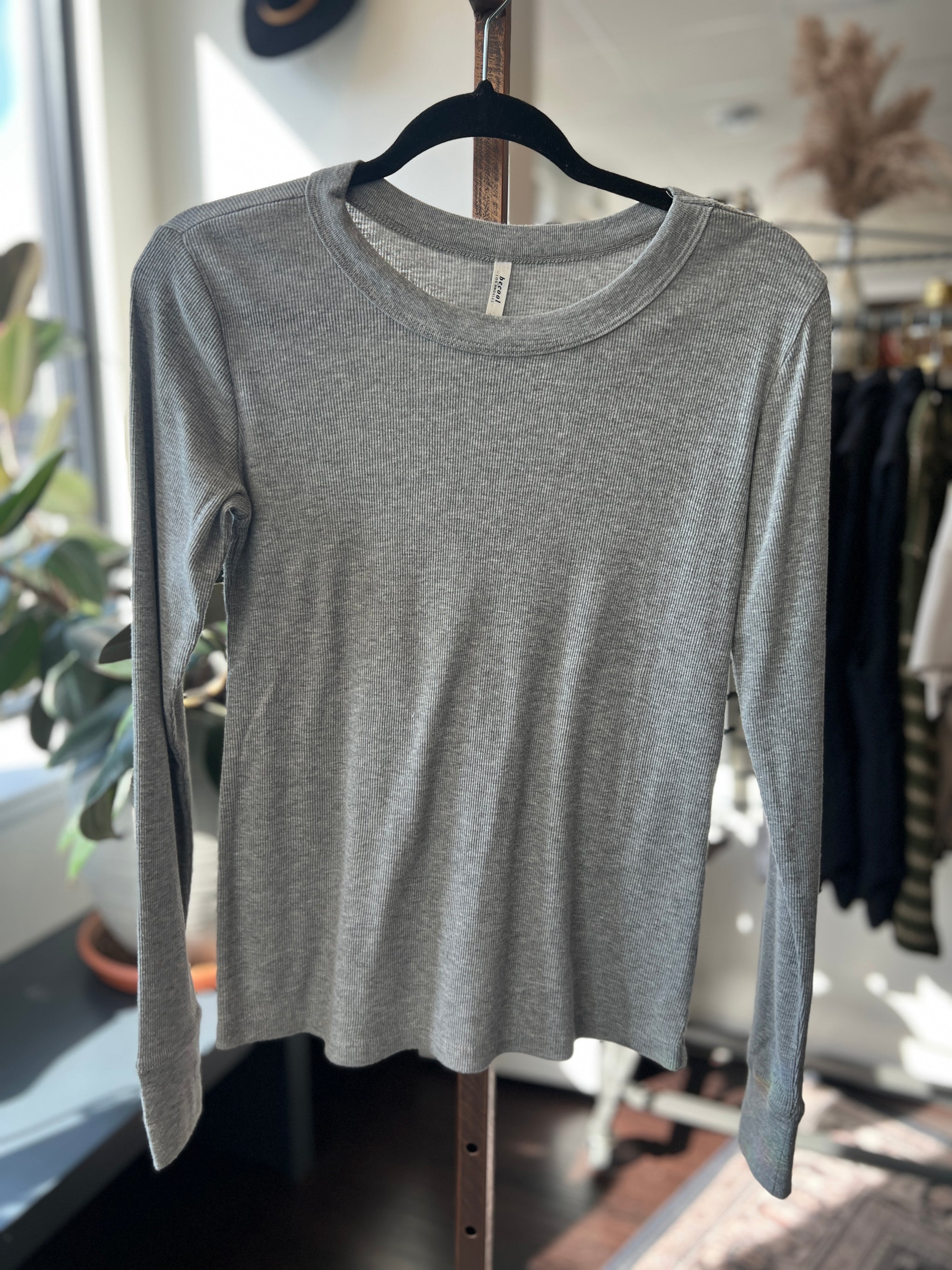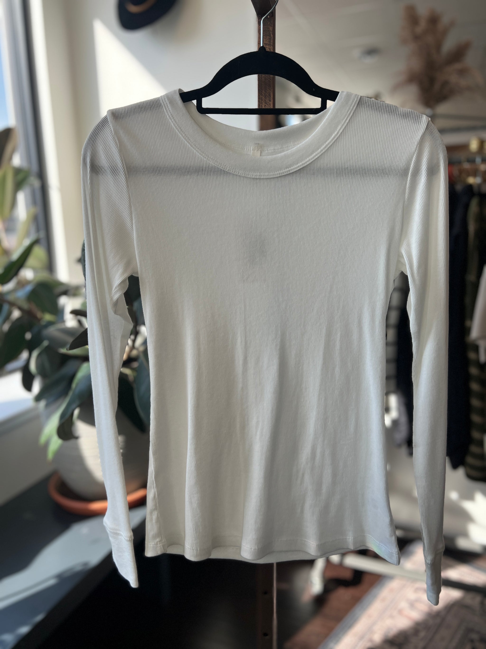 A must-have layering piece with just the right amount of stretch—this ribbed long sleeve is fitted, flattering, and so easy to style.