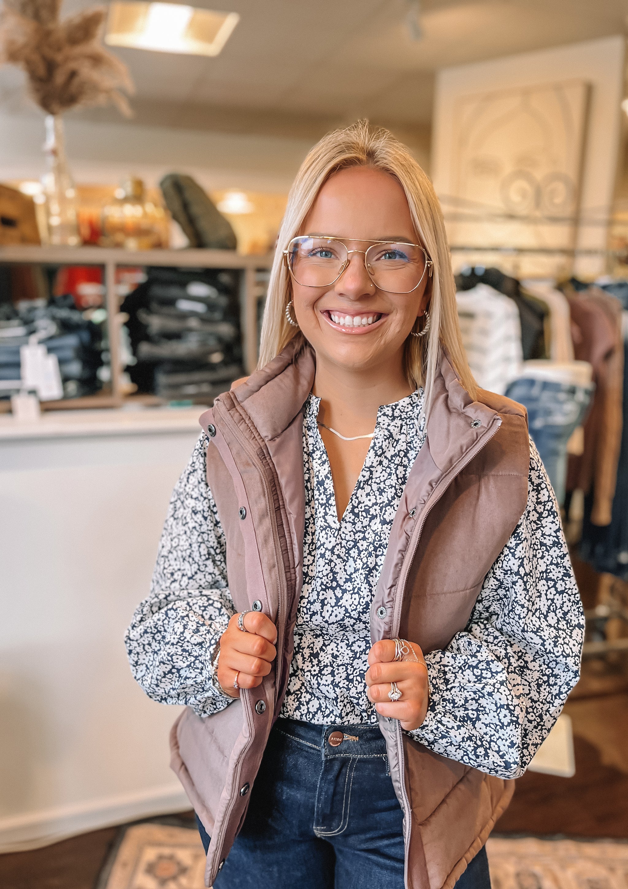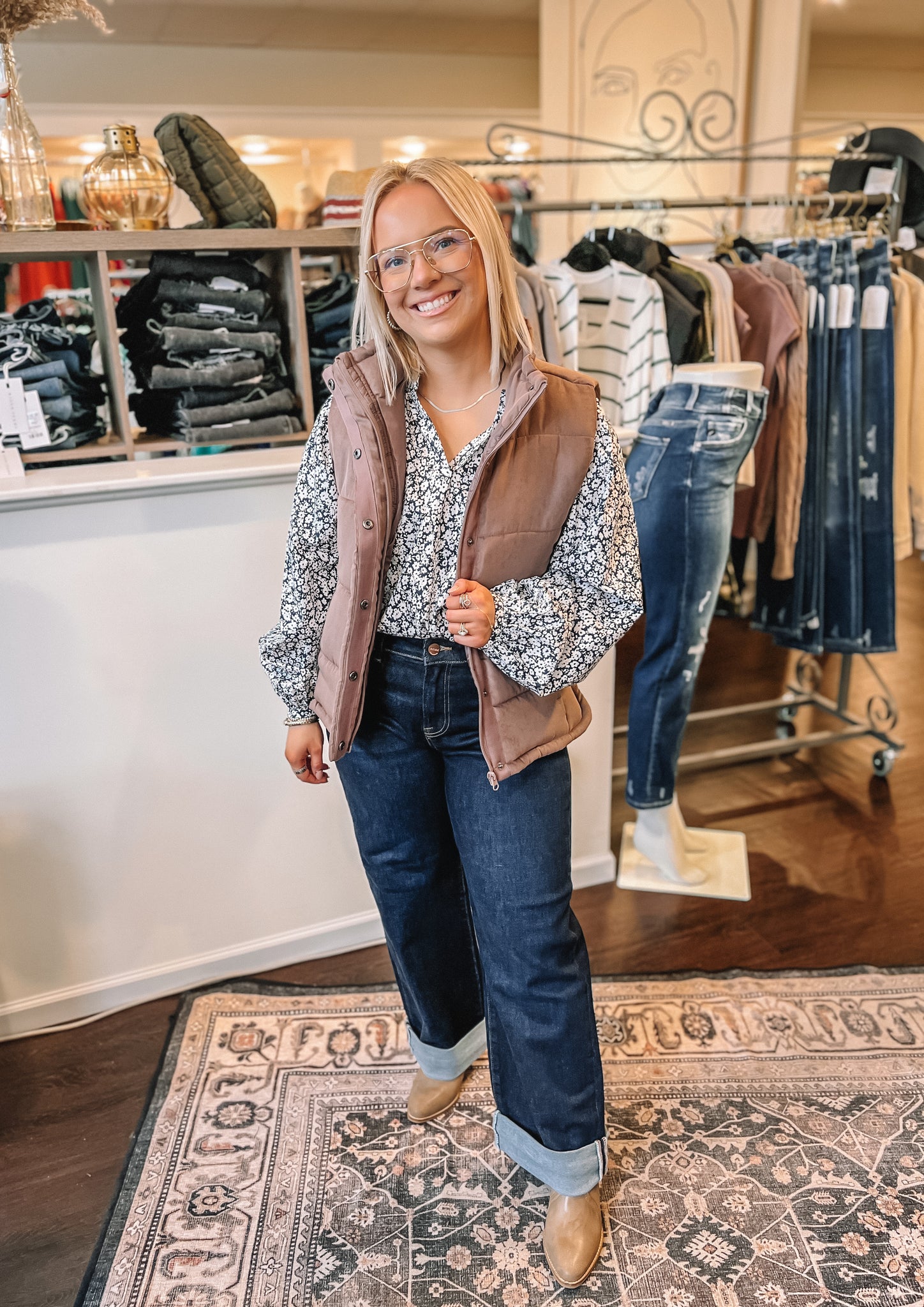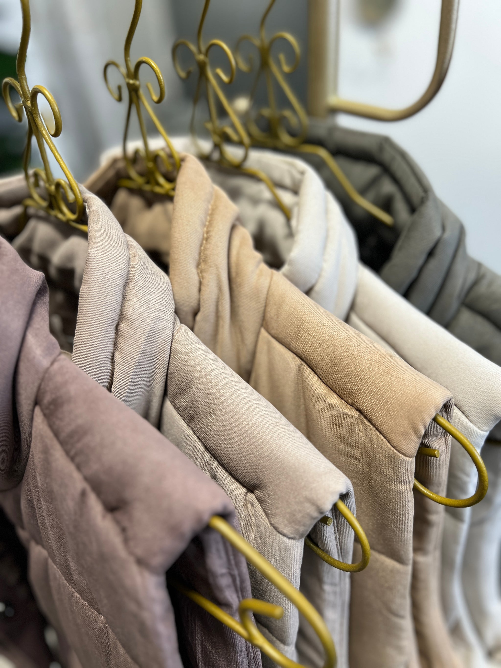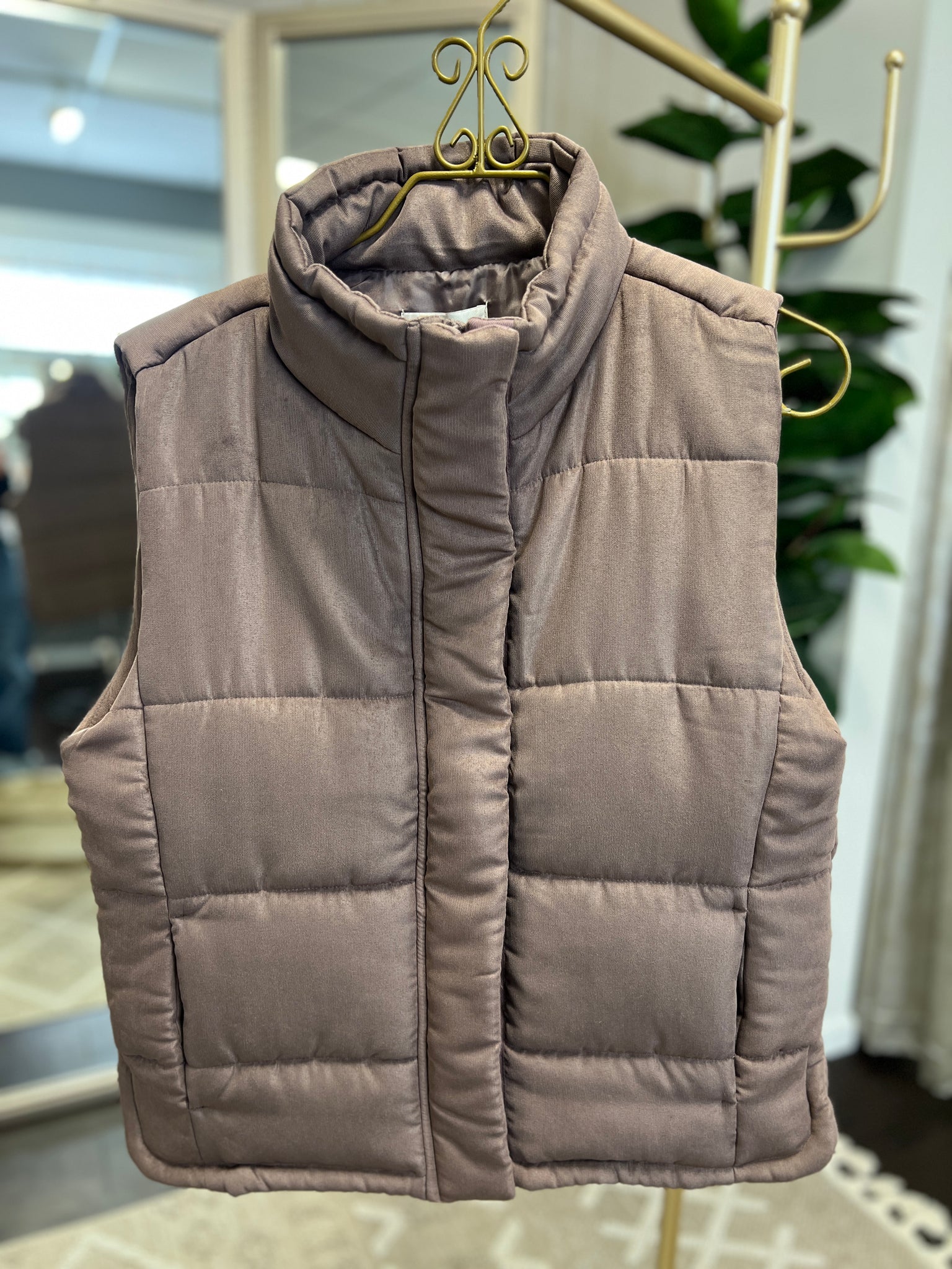 A luxe layer with an elevated feel 🀎 This micro suede puffer vest brings warmth and style together with its soft texture and tailored silhouette. Designed with a flattering fit that skims the body, it hits right at the hip for an effortlessly put-together look. The notched detail at the side adds a modern touch and easy movement β€” perfect for layering over your favorite knits, flannels, or long sleeves.